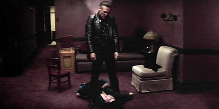 Blue Velvet is still pretty hypnotic, even after nearly 35 years, and certain elements almost seem like a practice run for some of what we would see in the original Twin Peaks TV show 4 years later. The most obvious one is the notion of dark, twisted forces lurking beneath the tranquil, All-American, white picket fence veneer of the setting. You have the attractive young couple in Jeffrey and Sandy, who seem to be falling in love, and we see more than a few nods to the idealist view of relationship from American suburbia from the 1950s and early '60s. It doesn't take long, though, before things get weird. Like, really weird. No sooner does Jeffrey sneak into the lounge singer Dorothy's house for some intel on a possible murder than he finds himself in a closet, peeping on her undressing, then seeing her brutally victimized by the unhinged, sexually warped madman, Frank. This dizzying dichotomy of light and dark has long been a part of David Lynch's works, and Blue Velvet was his earliest and probably still his most accessible example of it.